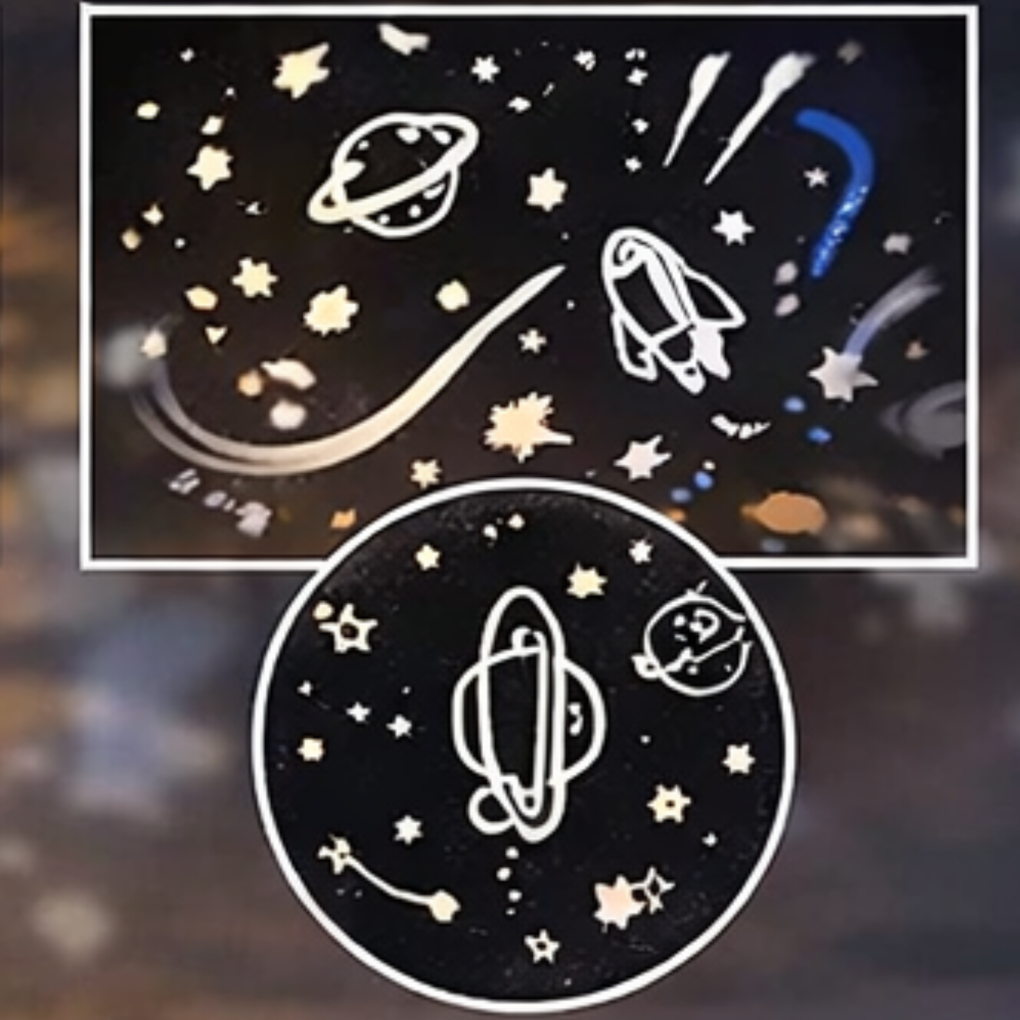 Proyección espacial con cohetes, planetas y estrellas que estimula la imaginación y convierte el dormitorio en una aventura galáctica.